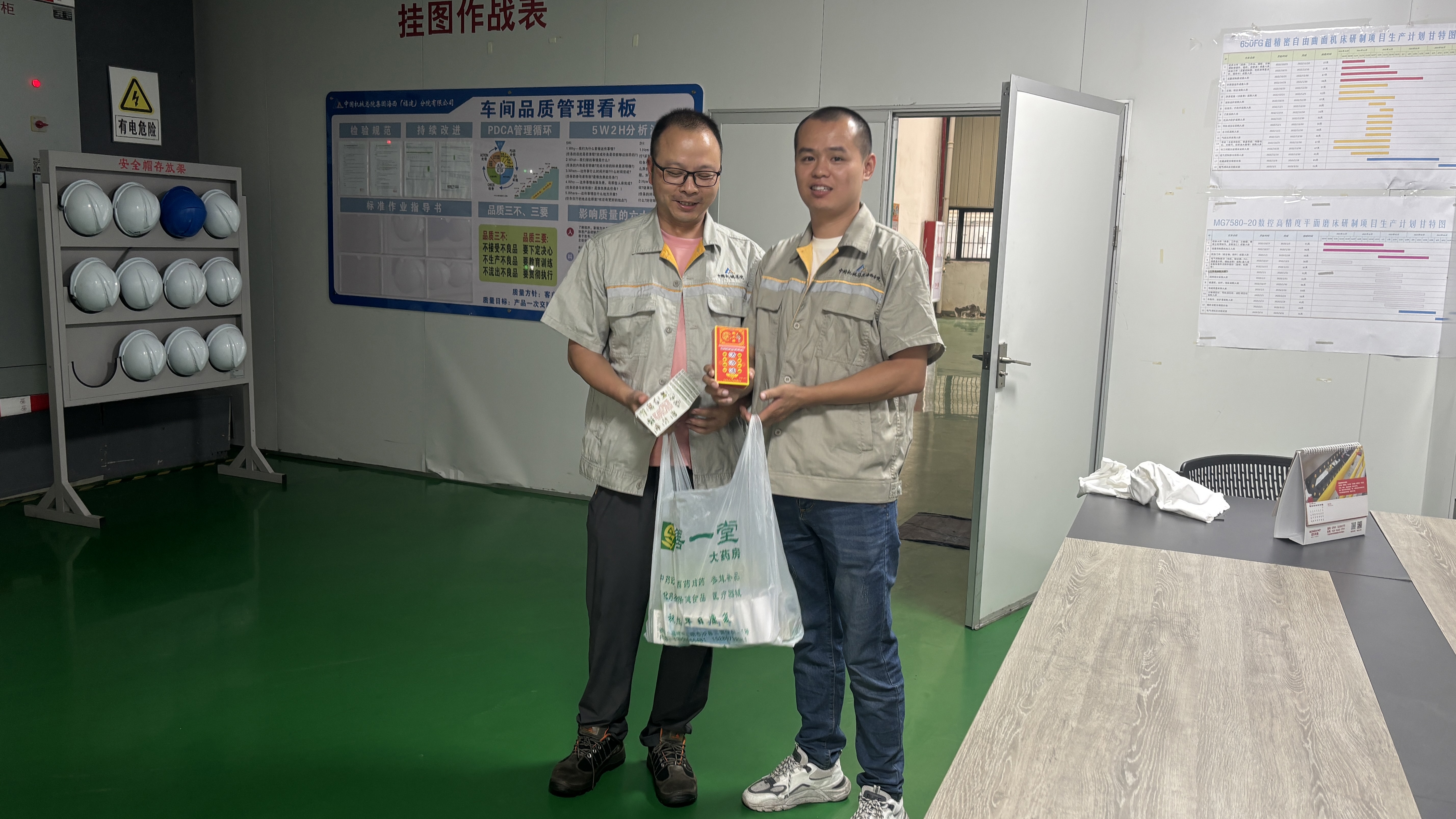 在生產(chǎn)車間品質(zhì)管理看板前,分院精心籌備的應(yīng)急藥品包逐一送到員工手中,涵蓋防暑降溫、常見傷病治療等藥品。拿到藥品的員工們臉上洋溢著笑容,感受到公司實(shí)實(shí)在在的關(guān)懷。在車間、在辦公室,大家相互分享這份喜悅,“公司時(shí)刻想著我們,干活更有勁兒了!”一位員工質(zhì)樸的話語,道出了眾人的心聲。