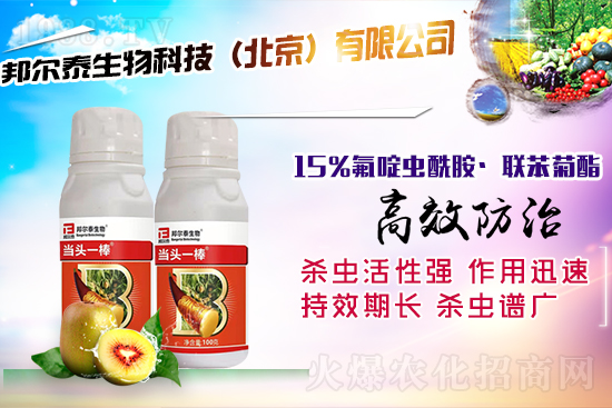 15%氟啶蟲酰胺·聯(lián)苯菊酯-當頭一棒-邦爾泰生物 總有效成分含量:15% 有效成分及其含量: 聯(lián)苯菊酯5% 氟啶蟲酰胺10% 劑型:懸浮劑 凈含量:100克