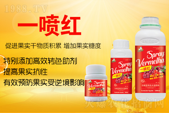 巴斯福【功能型有機(jī)水溶肥料-一噴紅】可快速促進(jìn)果實(shí)成熟轉(zhuǎn)色,提前上市7-12天,且果實(shí)色澤均勻自然;有效促進(jìn)果實(shí)干物質(zhì)積累,增加果實(shí)糖度,預(yù)防果實(shí)受逆境影響,提高果實(shí)抗性。