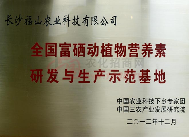 長沙福山農(nóng)業(yè)科技有限公司是國內(nèi)較早從事粉劑富硒葉面肥和富硒保健功能食品開發(fā)的先驅(qū)企業(yè)之一,目前公司共有磷酸硒鉀、腐殖酸硒鈦、生物活性硒元三個(gè)發(fā)明專利,已應(yīng)用于國內(nèi)硒開發(fā)多個(gè)領(lǐng)域,是集農(nóng)林植物產(chǎn)品的研究、開發(fā)、生產(chǎn)、銷售與服務(wù)為一體的高科技企業(yè)。